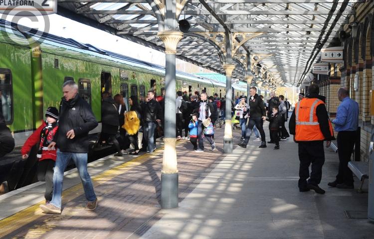Dundalk Democrat photographer Arthur Kinahan, caught up with supporters boarding the Lilywhite Express this morning, for the FAI Cup Final at the Aviva Stadium.