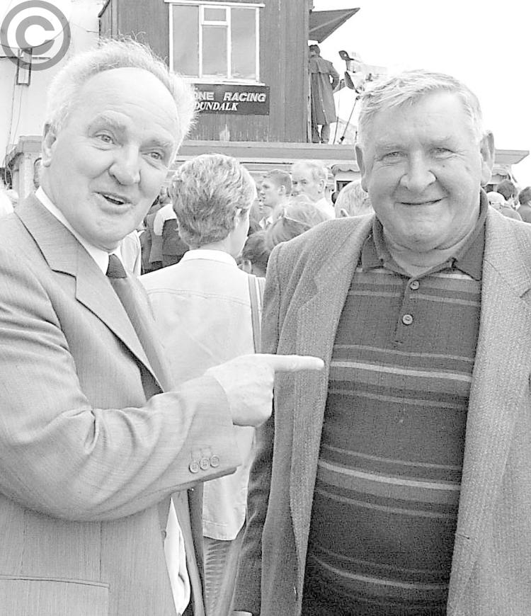 Frank Lynch, Louth '57 All-Ireland winner, and Geraldines GFC goalkeeper Mickey Murphy from Haggardstown at the Dundalk Races.