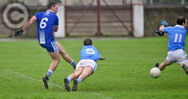 Emmet Carolan of the Blues escapes the challenge of Gerard McSorley, Gaels. (Pic: Ciarán Culligan)