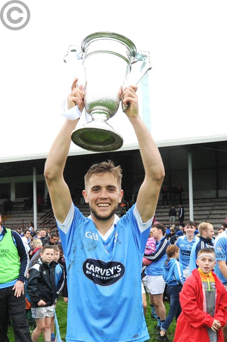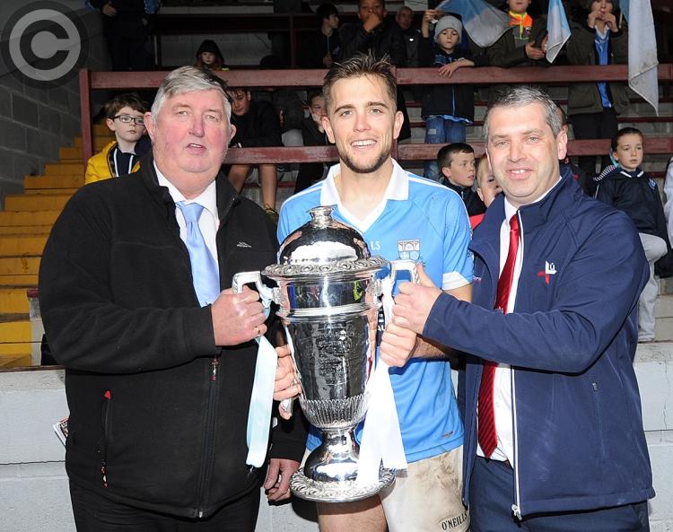Andy McDonnell is presented with the Joe Ward Cup. (Pic: Arthur Kinahan)