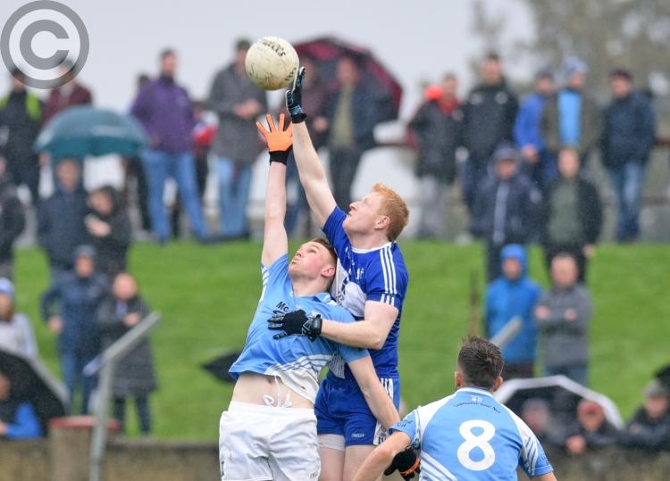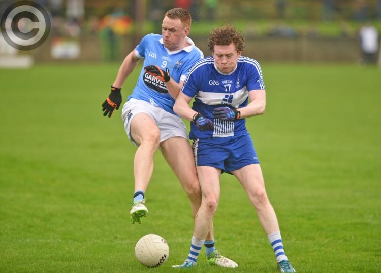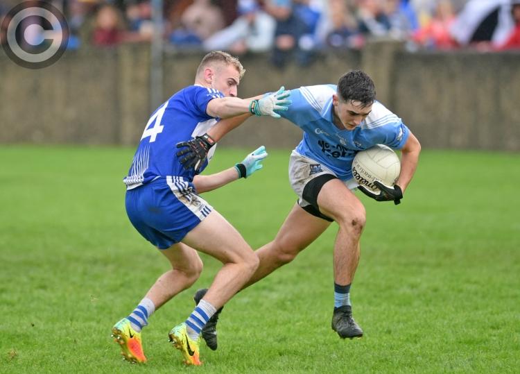 Robert Carr of Blues and Gaels' James Stewart. (Pic: Ciarán Culligan)