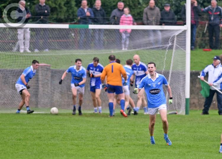 Robert Carr celebrates Conor Moore's first-half goal for the Blues. (Pic: Ciarán Culligan)