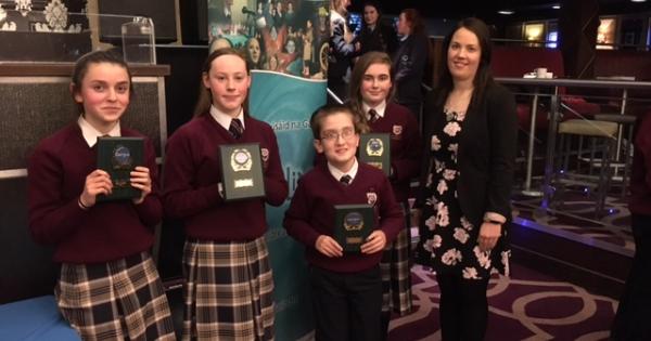 The table quiz competition is run by Gael Linn and after rounds of regional qualifiers, teams compete in a quiz with all of the questions in Irish. Students answered questions on general knowledge, sport, culture and politics.