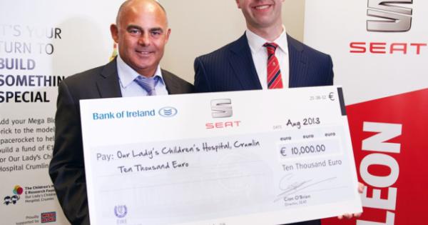 Conachy’s Garage Dunleer helped raise the huge figure of €10,000 for Our Lady’s Hospital Crumlin. Cian O’Brien, Director of SEAT Ireland and Barry Conachy of Conachy’s Garage are pictured with the cheque.