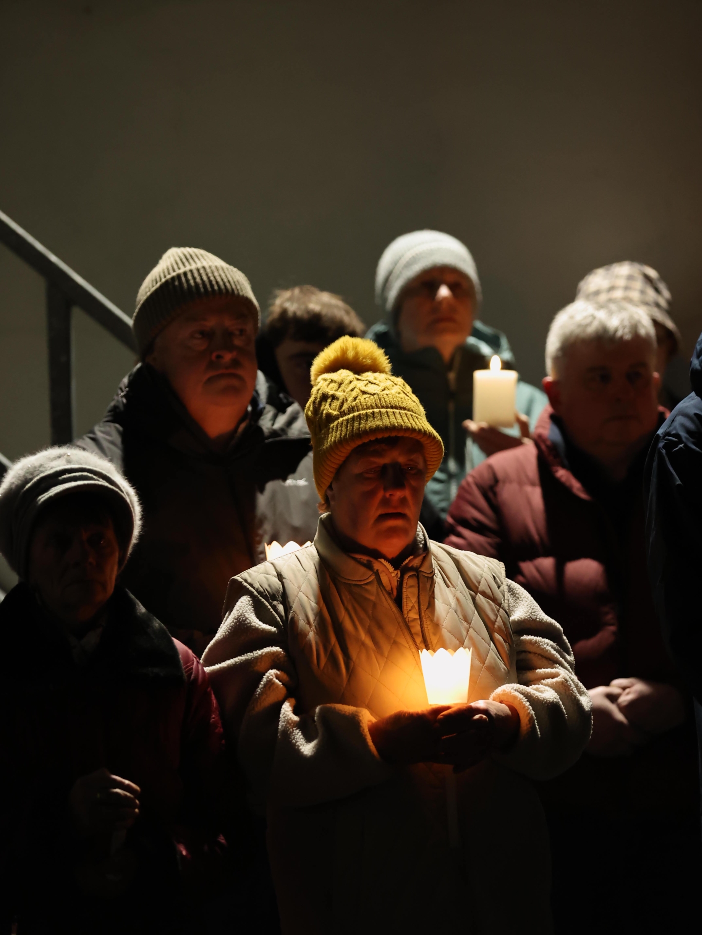At Drumconrath Gaelic Football Club, hundreds gathered with candles and mobile flashlights for a vigil on a cold, dark, and windy night.