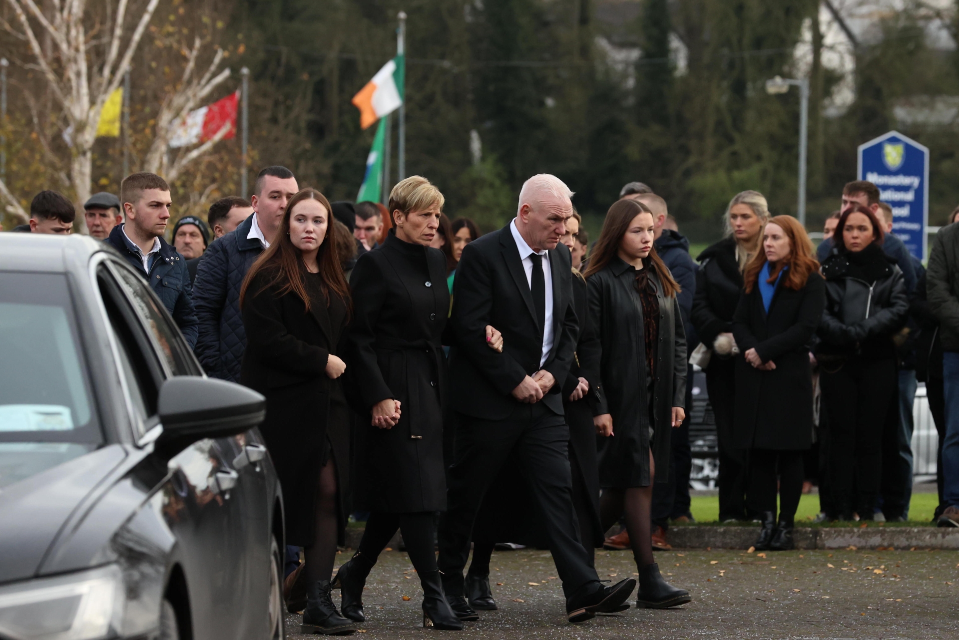 President Catherine Connolly arrived at the church ahead of the funeral and after attending the funeral for one of the other victims – Alan McCluskey – in Co Meath on Friday morning.