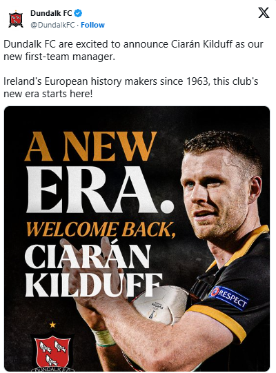 Dundalk Football Club has confirmed that former player, Ciarán Kilduff, has returned to the club as first-team manager.