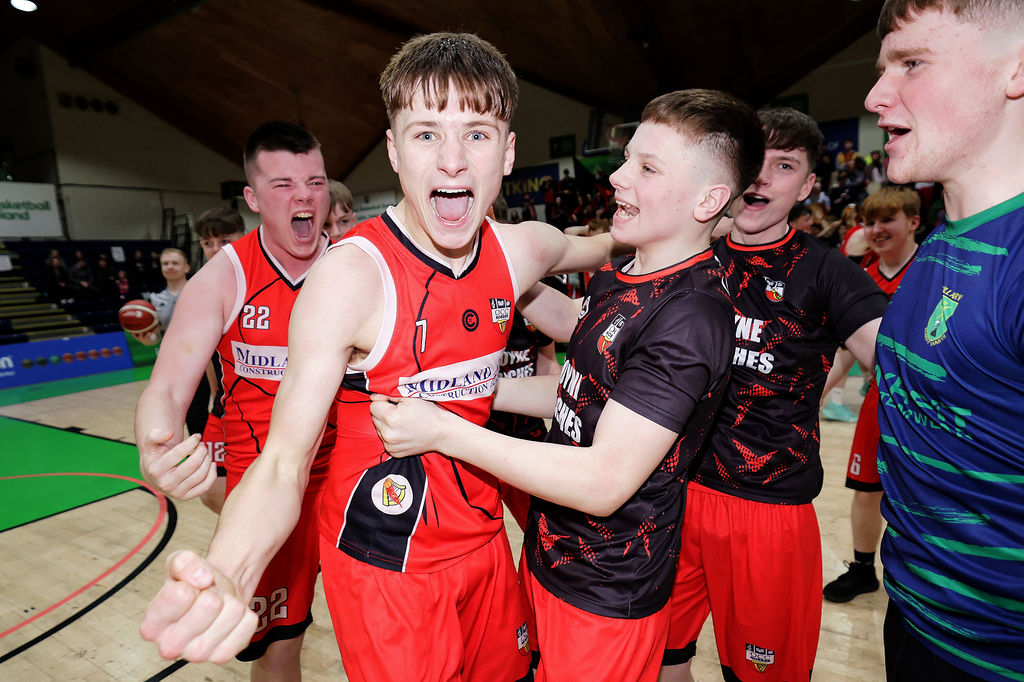 Gustas Pocevicius celebrates with the All-Ireland Under 19C Boys Schools Cup. Picture by Basketball Ireland