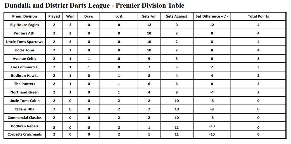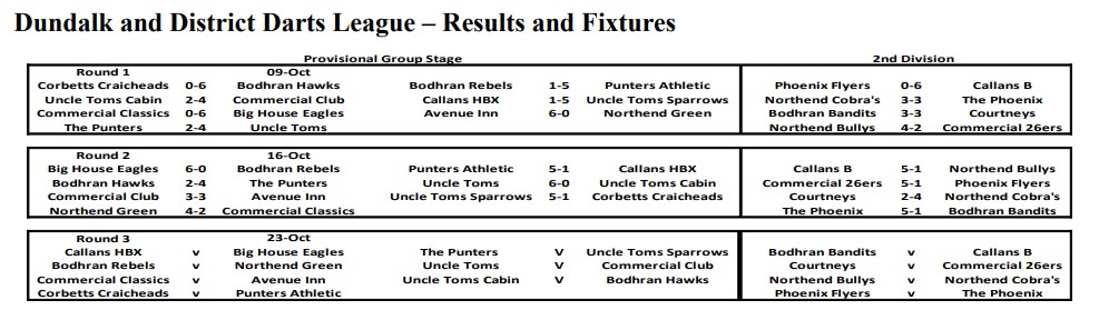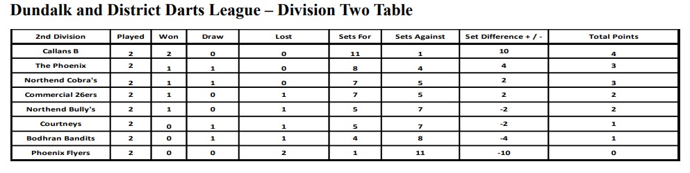 Week two of the Heineken-sponsored Dundalk and District Dart League saw a number of intriguing fixtures take place.