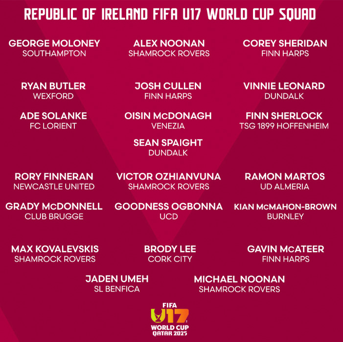 The squad fly out next week to their first ever FIFA Under-17s World Cup with 16 of the group having come through the League of Ireland pyramid. Ireland have been drawn in Group J along with Panama, Uzbekistan and Paraguay.