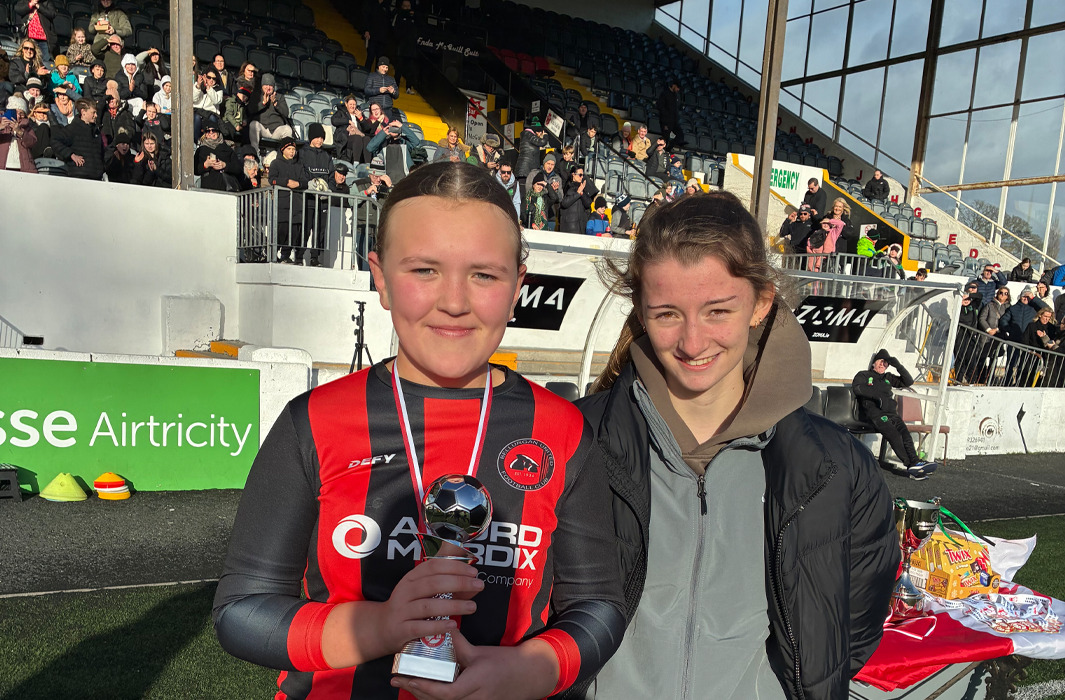 The young Quay player slotted home midway through the first half to give her side the lead, Teaghan Duffy the busier of the two goalkeepers in the first half, carrying off two great saves to keep the lead to the minimum.