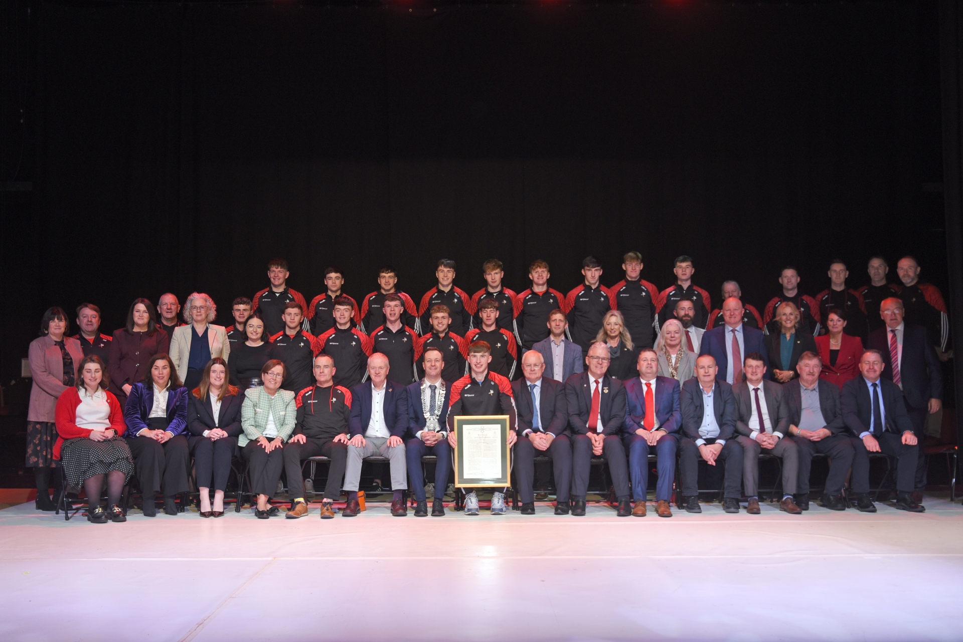 Cathaoirleach, Cllr Seán Kelly, then presented Civic Honour Scrolls to each team. The honours were accepted by captains Tommy Durnin, Sean Callaghan, and Áine Breen on behalf of their teams.