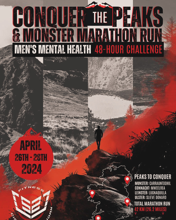The plan is to climb the highest peaks in all four provinces of Ireland in the first 24 hours; Lugnaquilla (Leinster), Carrauntoohill (Munster), Mweelrea (Connacht) and Slieve Donard (Ulster), then on the second day to undertake a marathon distance run back in Dundalk.