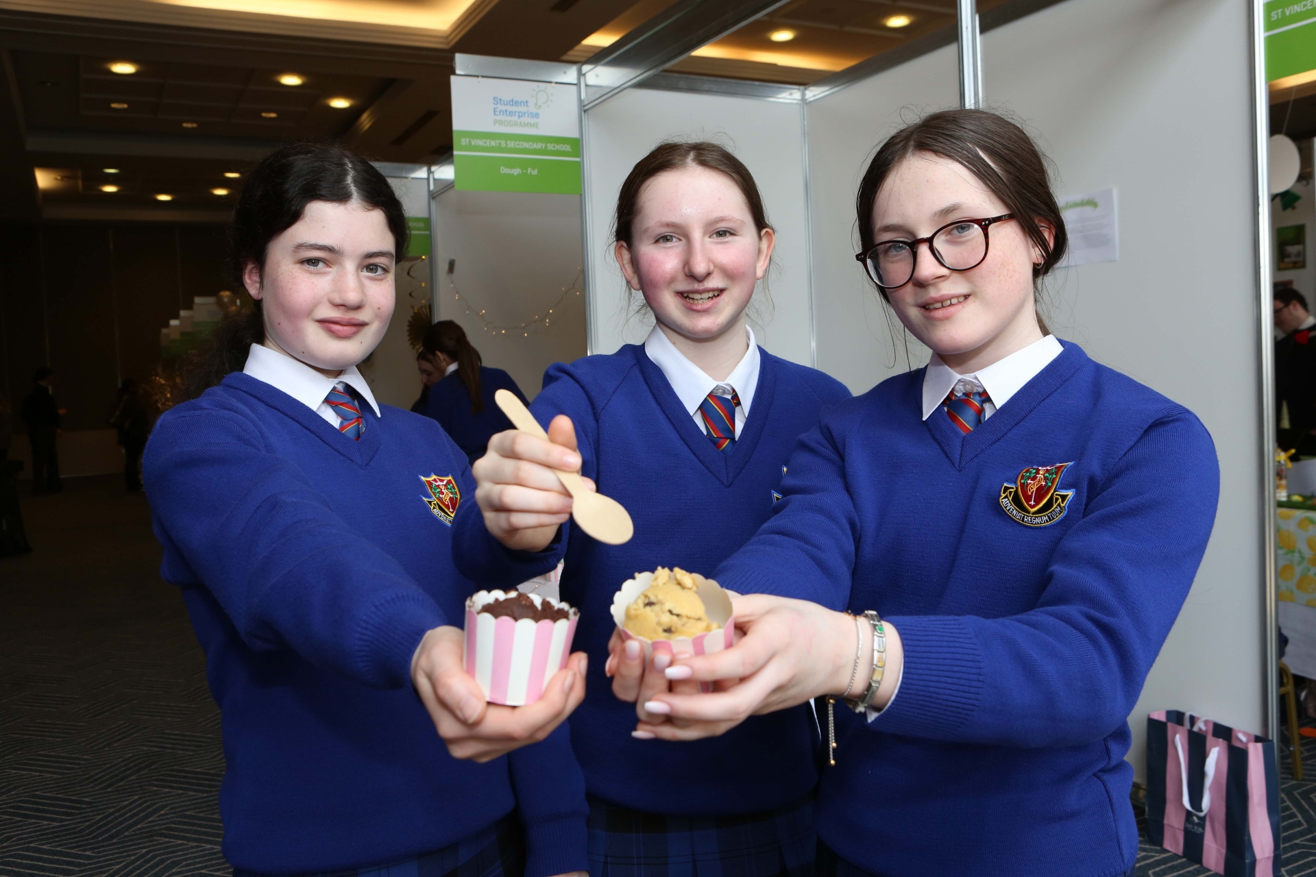 Fallon Jennings, Karolina Sadauskaite and Ana Gaztambide of "Dough-ful" from St. Vincents Secondary School, Dundalk