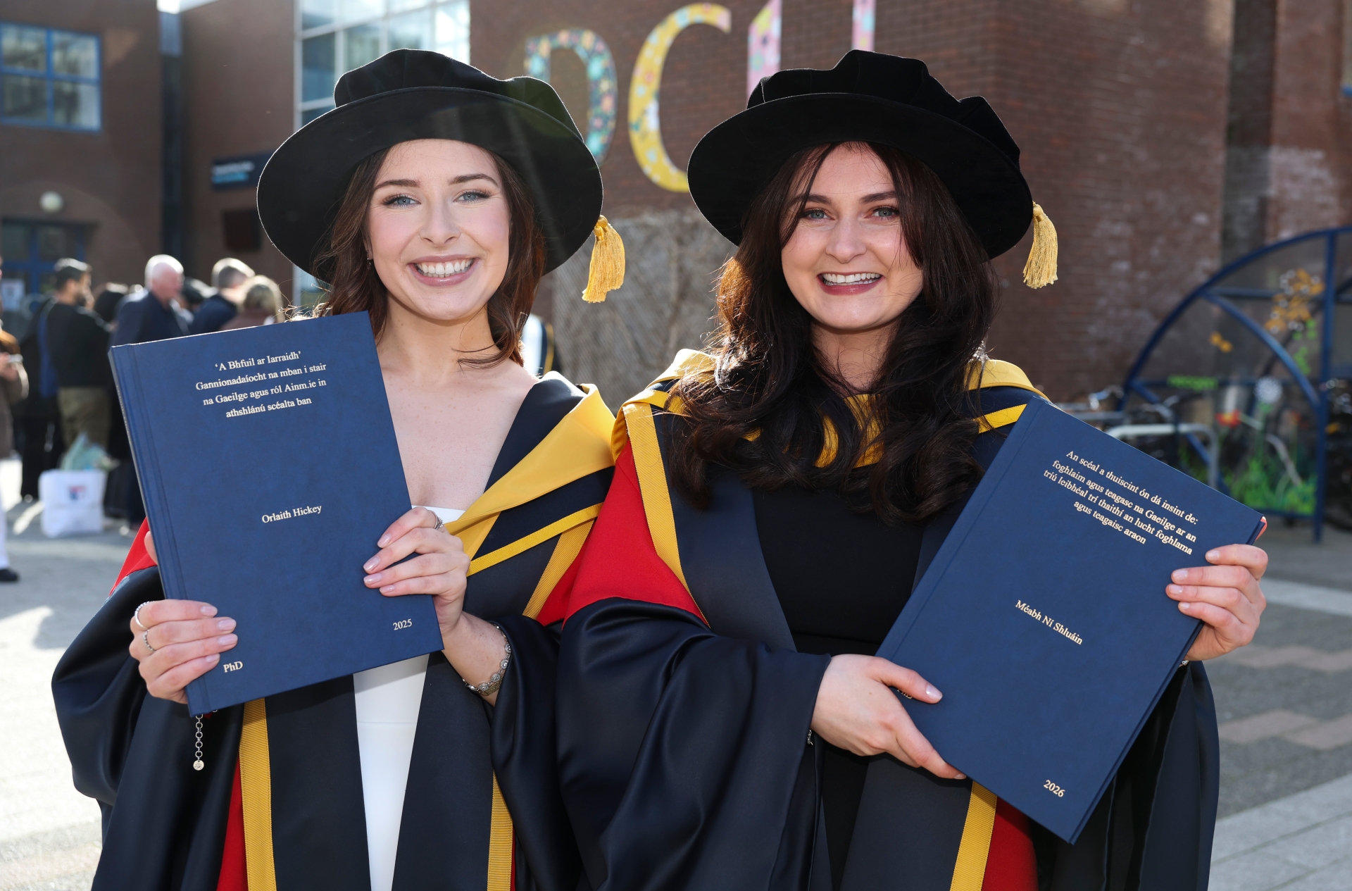 Orlaith Hickey from Carraigaline Co Cork and Meath Ni Shluain, Dundalk Co Louth who received a PHD during the Spring Graduation Ceremony in Dublin City Unversity (DCU) .Pic :Kyran O’Brien DCU
