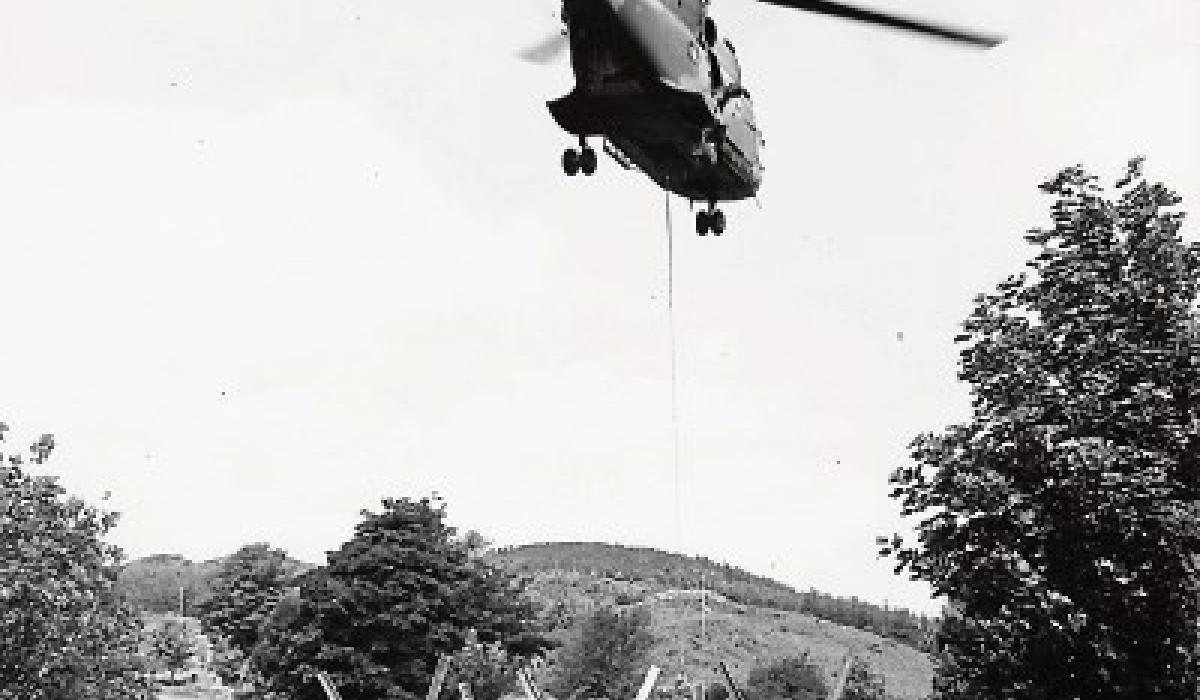 It is a photograph of British Army engineers using a helicopotor to erect a barrier across a small country road between Louth and Armagh sometime in 1971. There had been attempts to close cross-Border roads prior to that year to stop raids across it by armed republicans but nothing like the effort that went into the campaign that followed Bloody Sunday in Derry. Locally the most significant event was the Battle of Dungooley in January 1971 which I referred to in my notes a couple of weeks ago as being the most intense engagement in the thirty years of the 'Northern Ireland Troubles'!