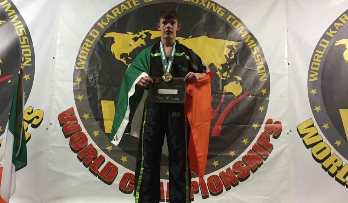 Local teenager Tiernan Weldon was celebrating recently after winning the U15 World Kickboxing Championship in City West.