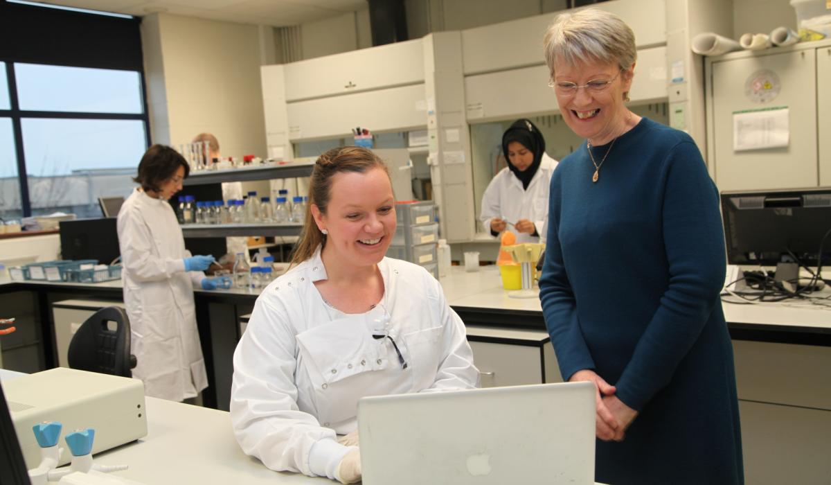 DkIT President, Ann Campbell with students in Science Lab on Campus.