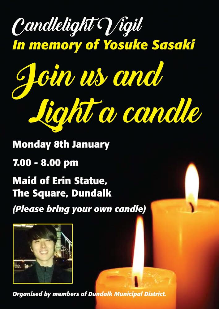 Speaking to the Dundalk Democrat Fine Gael Cllr. Maria Doyle said: "There has been an outpouring of grief from people in town since this tragic news emerged. I would encourage people to attend the vigil and pay their respects to Yosuke Sasaki's family by signing the book of condolences."