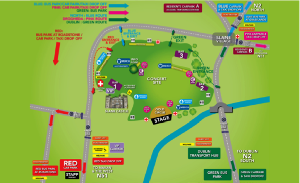 BLUE CAR PARK - N2 from North (M1 (J12)) PINK CAR PARK - M1 (J10) and N51 GREEN CAR PARK - N2 From Dublin / South RED CAR PARK - N51 from Navan (M3 (J9)) & West MUST APPROACH via N51 NAVAN to access the VIP CARPARK - VIP Customers must have a VIP CAR PARKING PASS ACCESSIBLE ENQUIRIES - Should you have any accessible queries / require an Accessible car pass please emailaccess@mcd.ie