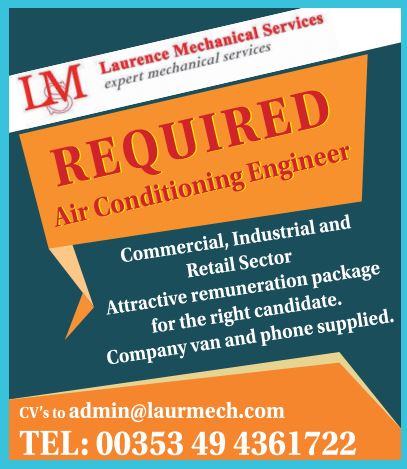 Laurence Mechanical Services require an Air Conditioning Engineer for the Commercial, Industrial and Retail Sector.
