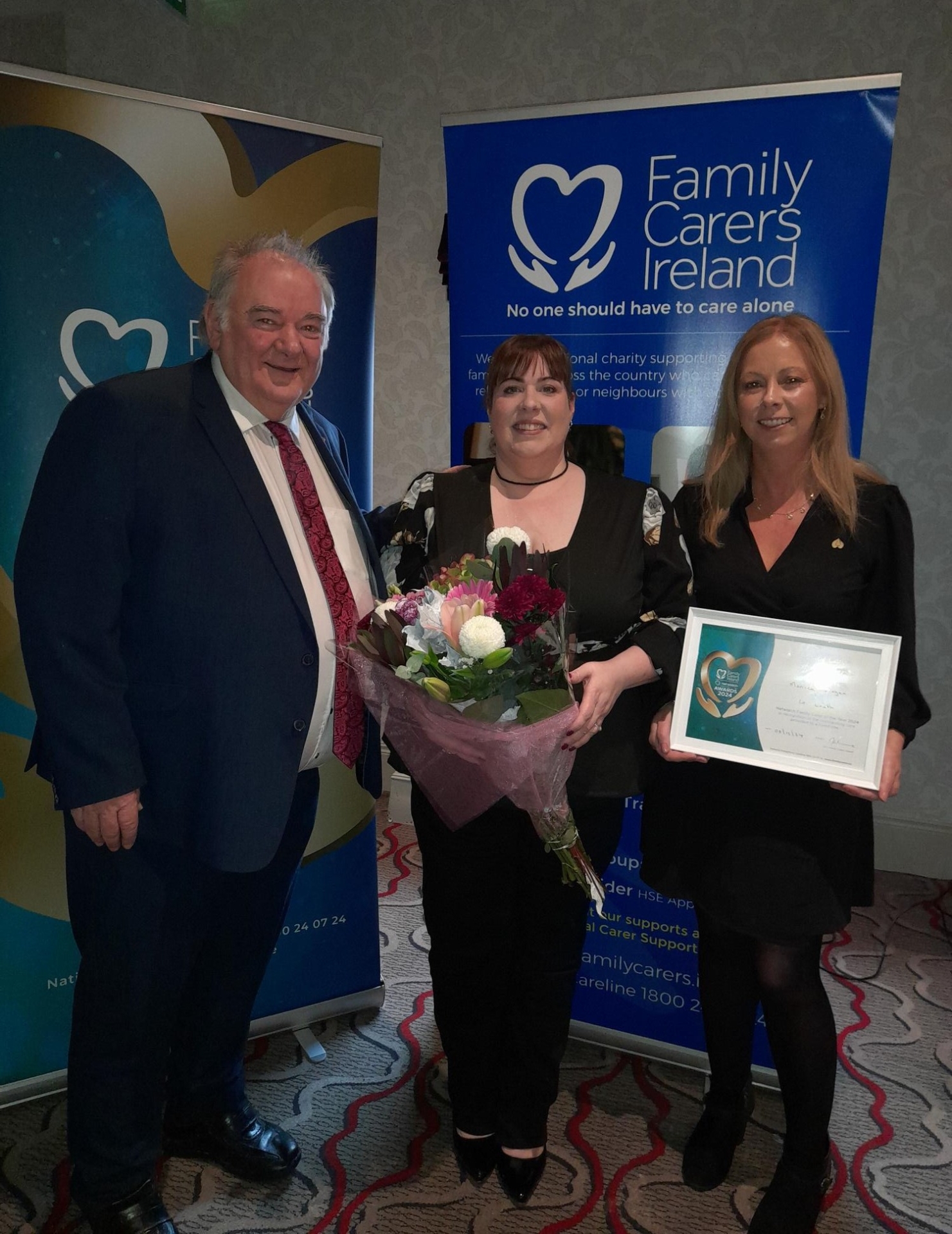 Pictured from left to right are Michael Godfrey, Netwatch; Monica Grogan, Netwatch Louth Family Carer of the Year and Jacinta Kennedy Mulligan, Community Support Manager, Family Carers IrelandSubscribe or register today to discover more from DonegalLive.ie