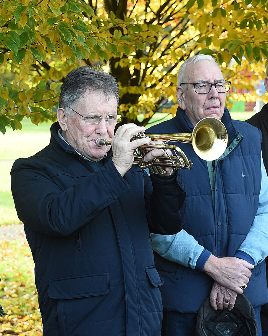 Below: Nicky Callan sounding the last post