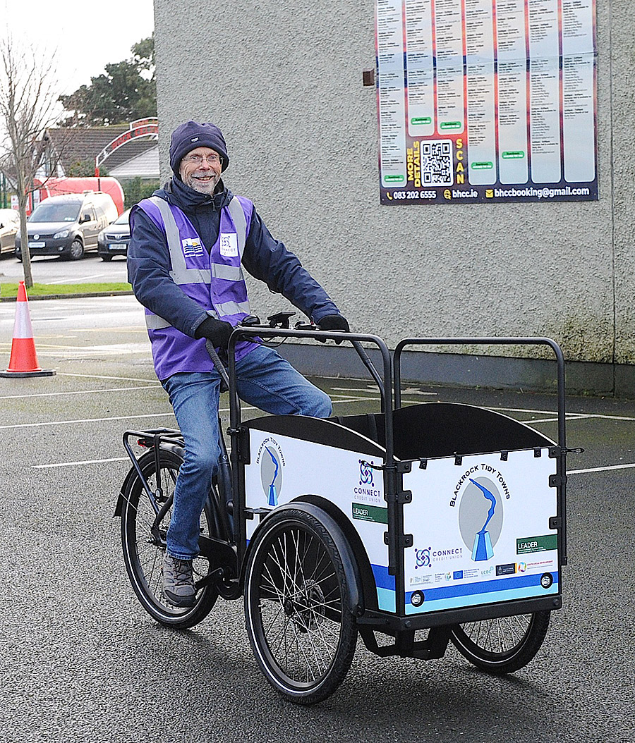 Below: John Horan, Chair of Blackrock Tidy Towns on one of the new cargo trikes