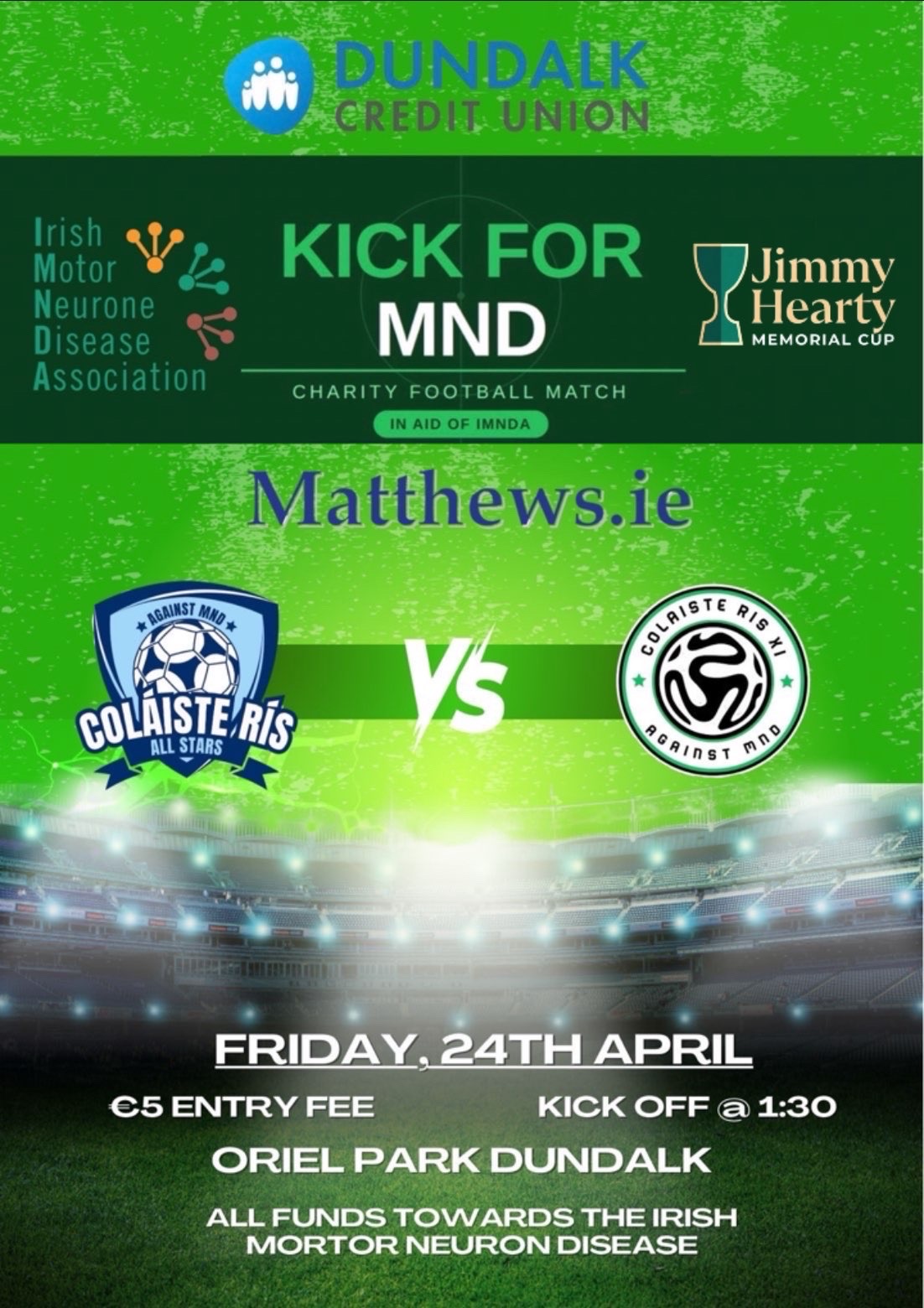 Kick for MND takes place at Oriel Park in Dundalk on Friday 24 April