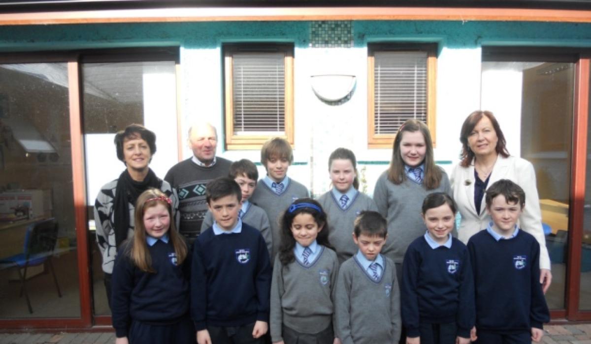 Hermione, Ewan, Aaron and Doireann, members of our Green Schools committee together with Mrs. Brennan and Sorcha Brophy, An Taisce Green Schools co-ordinator received the green flag, in the Helix, Dublin.