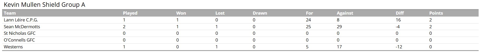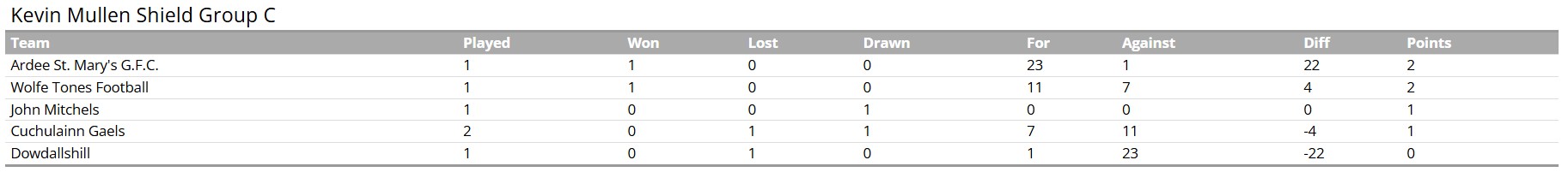 (Powerscreen Kevin Mullen Shield - Group A, Round 2 table)
