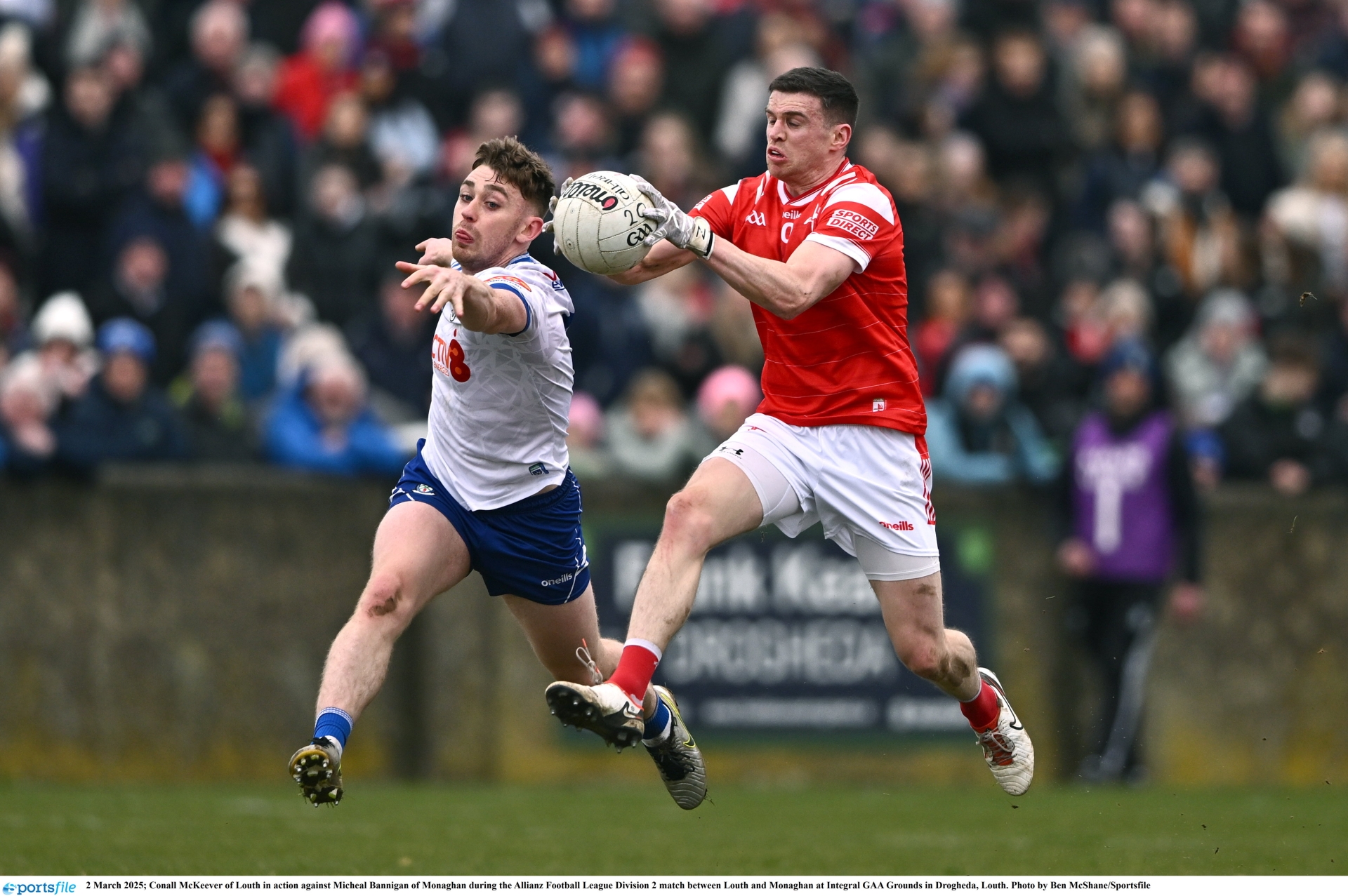 Louth senior footballers produced a spirited second-half fightback but it wasn't enough to overcome Monaghan at Integral GAA Grounds, Drogheda, this afternoon, as they fell to a 1-21 to 1-27 defeat in the Allianz National Football League.