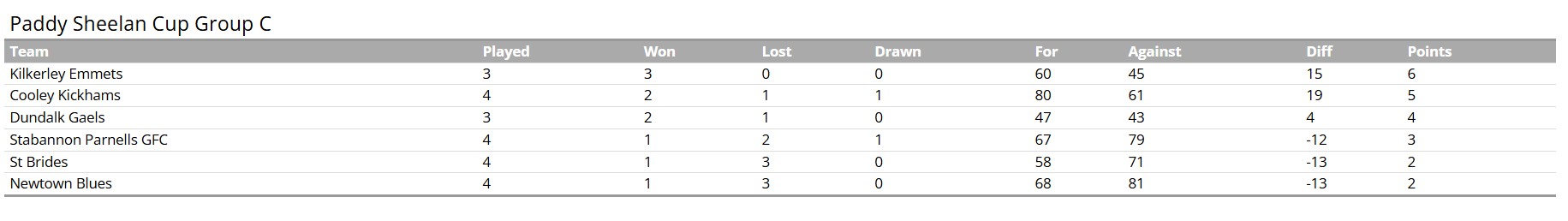 Group C – Round 4 - Tuesday, 11th March: Kilkerley Emmets v Dundalk Gaels – Dundalk Gaels at 8.00pm