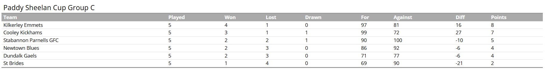 Cooley Kickhams were in determined form in Fr McEvoy Park on Friday night as their win over St. Brides ensured they finished runners-up in Group C of the Paddy Sheelan Cup.