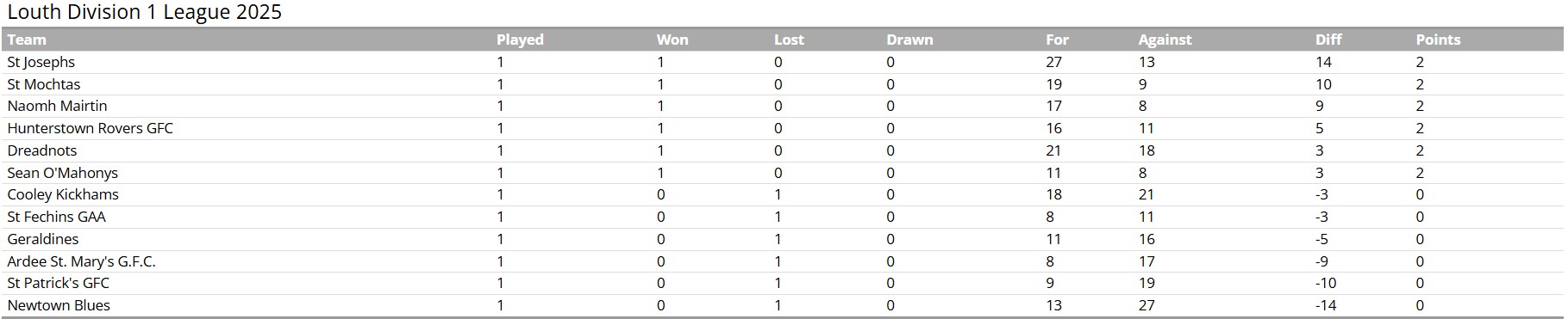 The Joes playing their first Louth GAA club Division 1 league match since 2007 delivered a comprehensive win against the Blues in Cluskey Park on Saturday night.