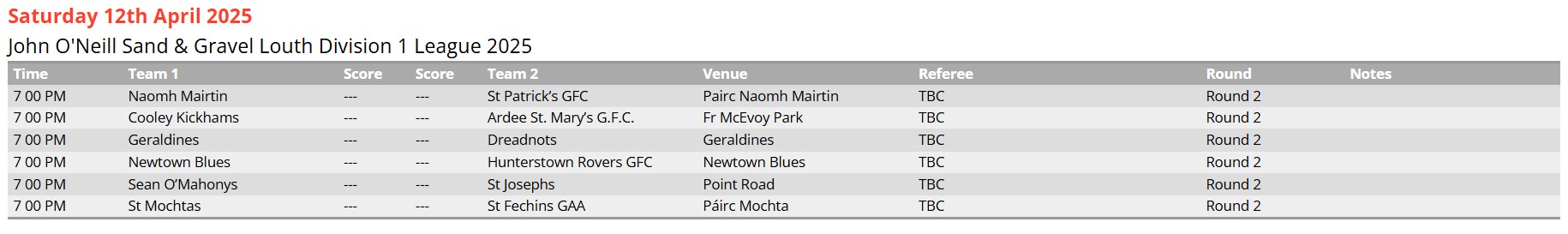 This has been the stand-out rivalry in the county over recent years and although both teams were missing players due to County commitments, the Mairtins will certainly take heart from this victory in the opening round of the Division 1 league.