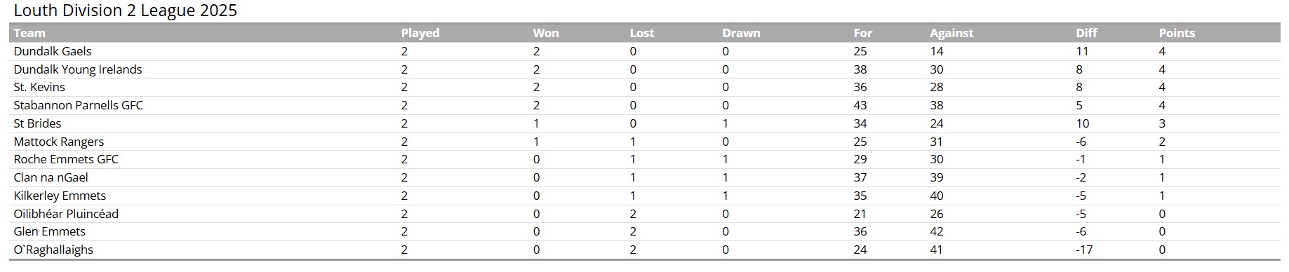 Dundalk Gaels made it two wins from two in the league at home in The Ramparts against winless Oliver Plunketts. The Drogheda men were again unlucky to come away without something for the second week running.