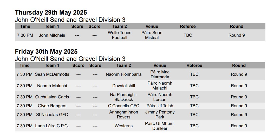 Wolfe Tones 3-4 Annaghminnon Rovers 0-9