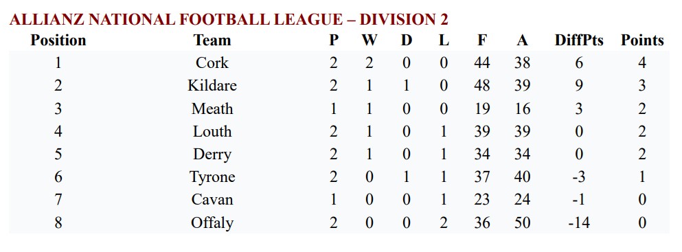 Louth suffered a five-point Allianz National Football League, Division Two defeat against a clinical Cork side at the Integral GAA Grounds in Drogheda this afternoon.