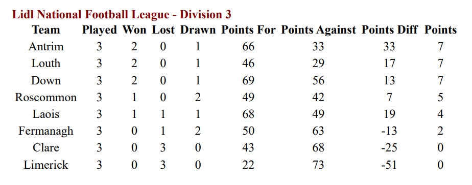Louth sit second in the table, level on points with Antrim, as Down lurk close behind. Draws have shaped the early rounds.