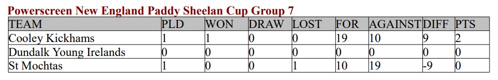 Cooley Kickhams are up and running in Group 7 of the Paddy Sheelan Cup after coming through this opening day test at home to St Mochtas.