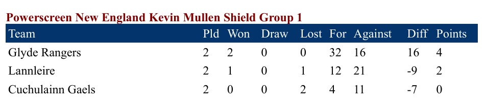 Glyde Rangers picked up their second win in Group 1 of the Louth GAA Kevin Mullen Shield when they overcame the challenge of Cuchulainn Gaels in Tallanstown on Saturday afternoon.