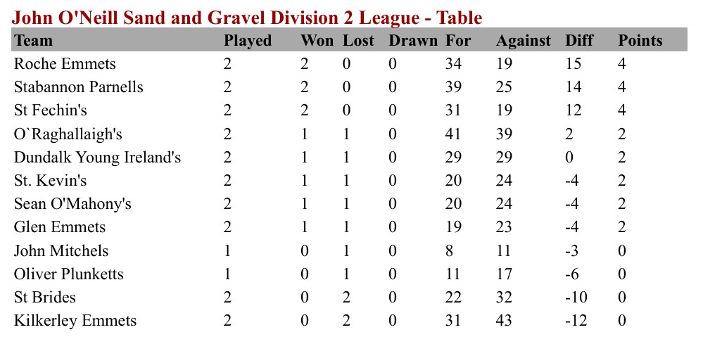 Stabannon Parnells 2-16 Kilkerley Emmets 1-11