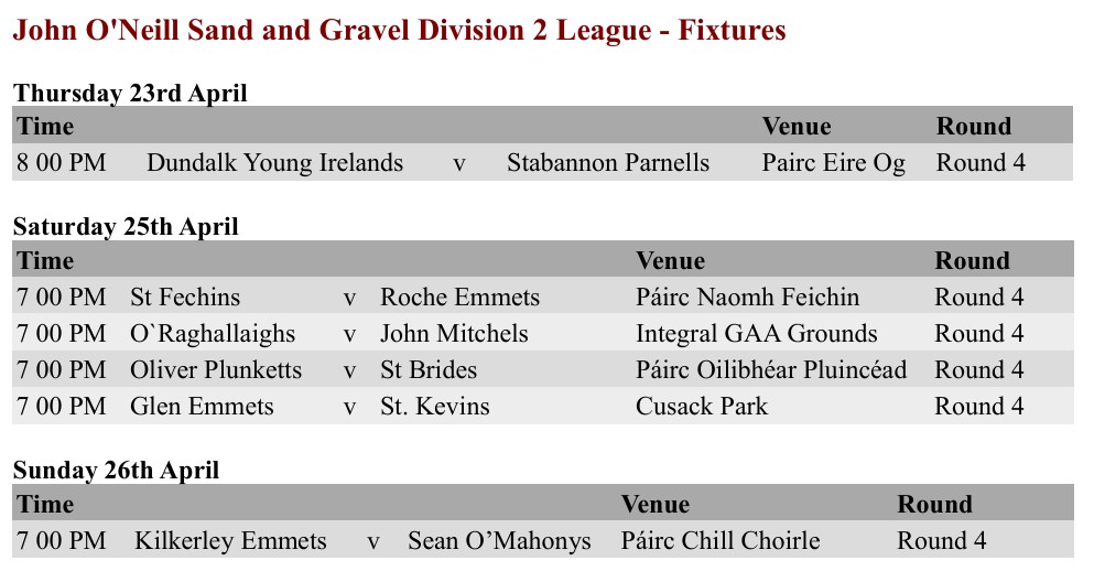 Louth GAA club | Division Two League round-up