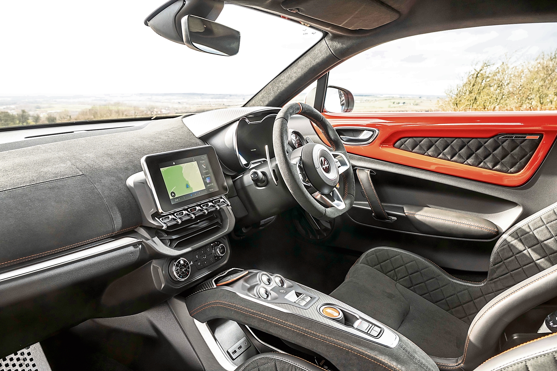 A few oddities were no blind spot technology in my A110 S, no lane departure, the satellite radio controls are set too low behind the steering wheel, the infotainment screen could be more befitting a car of its calibre and practically no internal storage space.