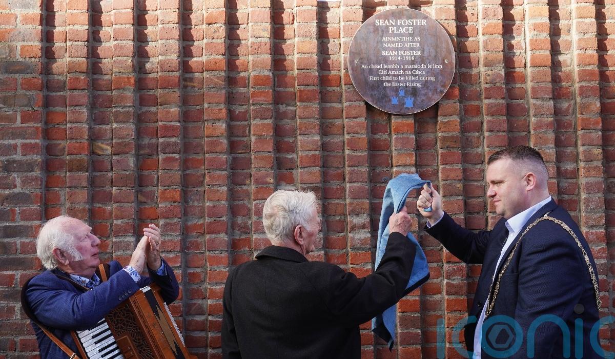 A plaque has been unveiled in Dublin in memory of Sean Foster, the first child killed during the 1916 Easter Rising.