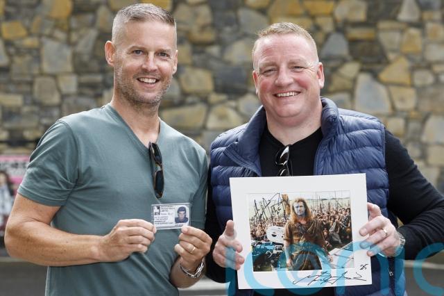 Gary Downes and Vinny McConnell, who worked as extras on Braveheart, reunited with Gibson at the poster signing and took memorabilia from the filming.