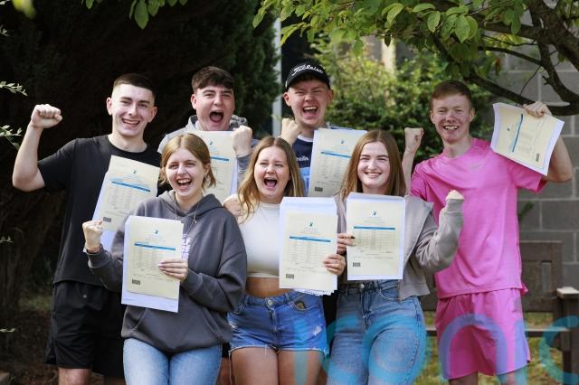 At Donahies Community School, students gathered in huddles to open the envelopes which revealed how they performed in the exams.