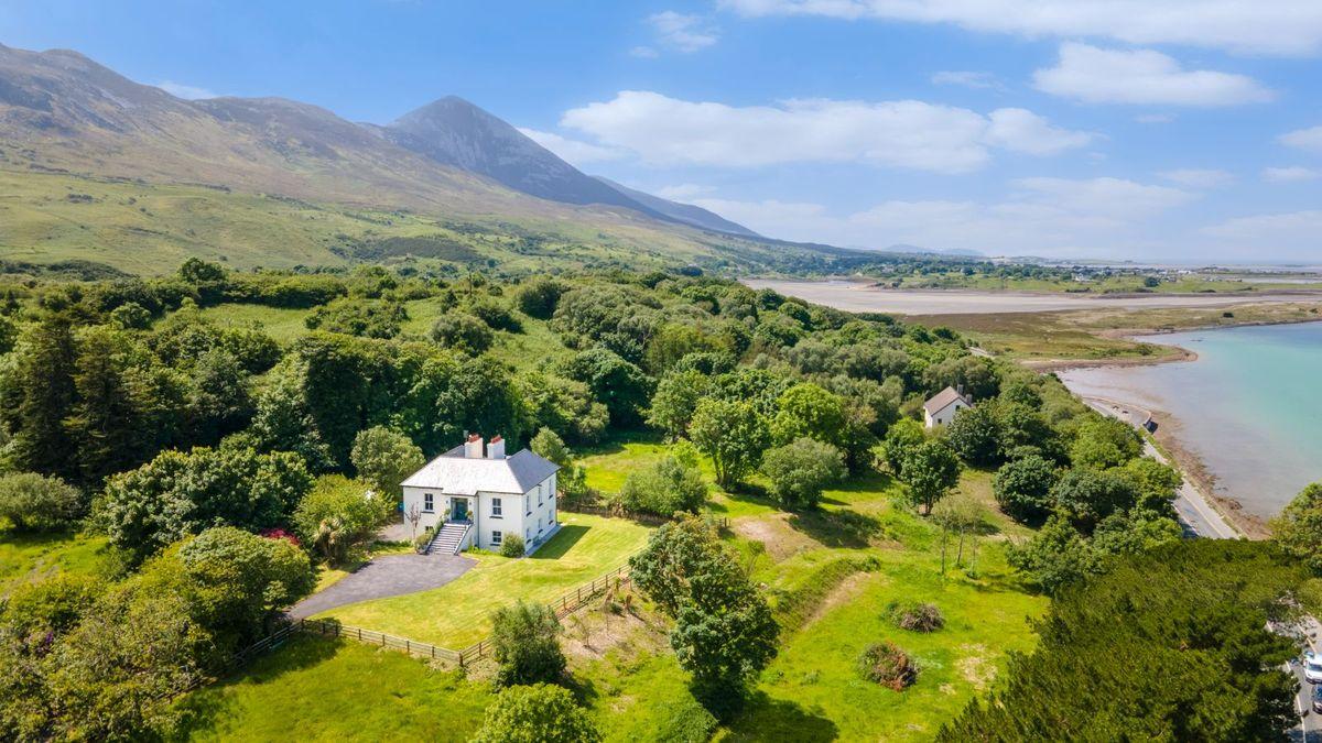 The listing reads: “This very fine period property comprises a residence of character and charm perched on an elevated site set well back from the road behind secure electronic gates, in a mature picturesque location with a spectacular vista over the adjacent Clew Bay.”