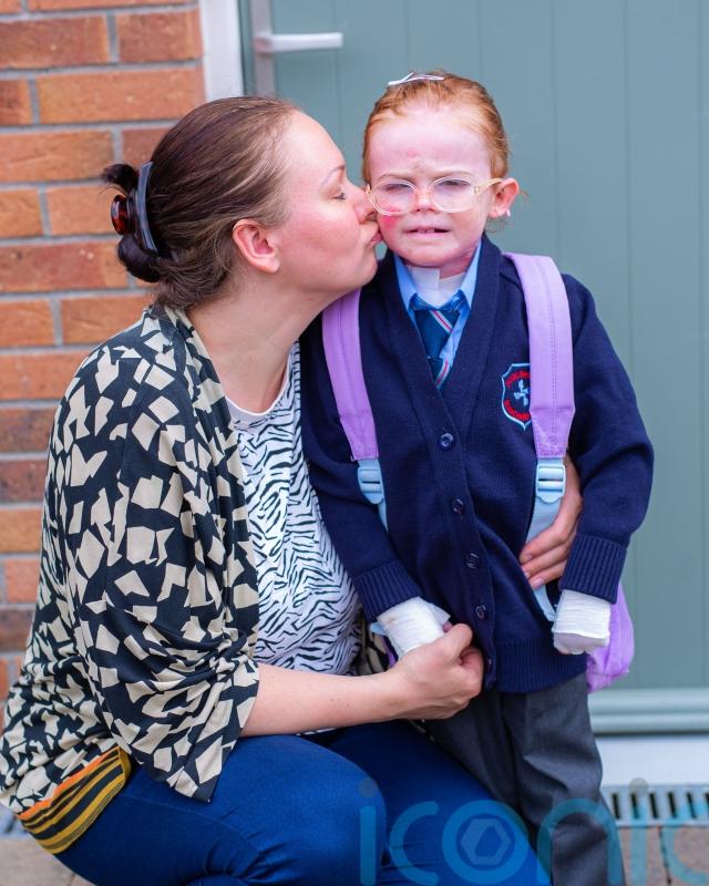 Maria Maciukas, from Dublin, will be waved off by her mother Gunita Spirge on her first day at a mainstream primary school on Thursday.